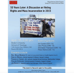This panel discussion focused on the ways that the Voting Rights Act of 1965 and the current state of mass incarceration in America inform one another and intersect with other important social, public health, and criminal justice issues. I had the pleasure of planning the event as well as framing the conversation.